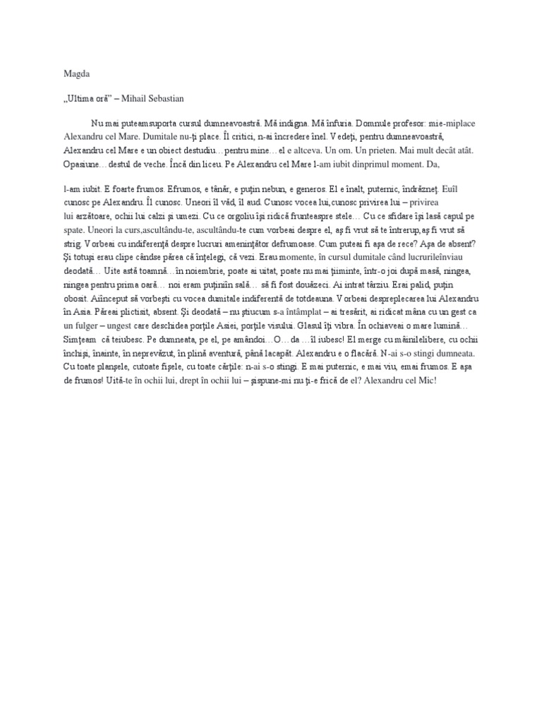 spate. Uneori la curs,ascultându-te, ascultându-te cum vorbeai despre el, aş fi vrut să te întrerup,aş fi vrut să