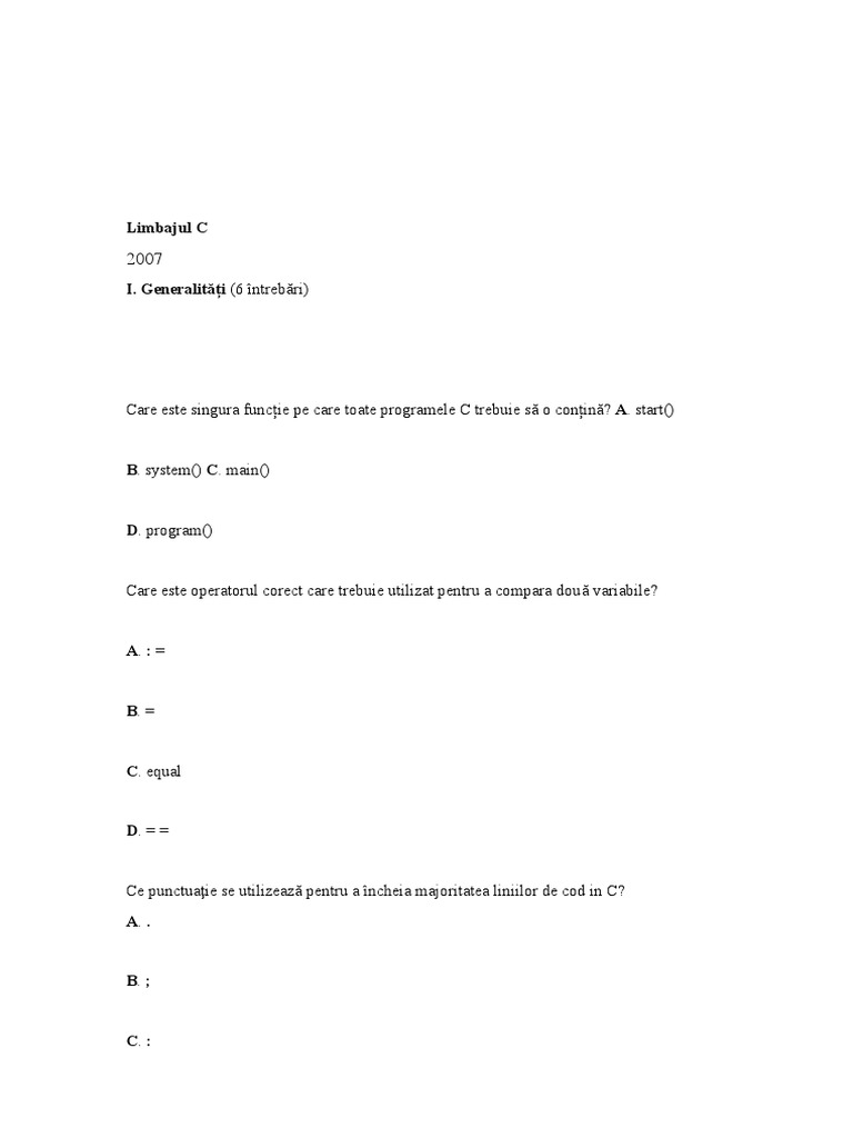 I. Generalități (6 întrebări)