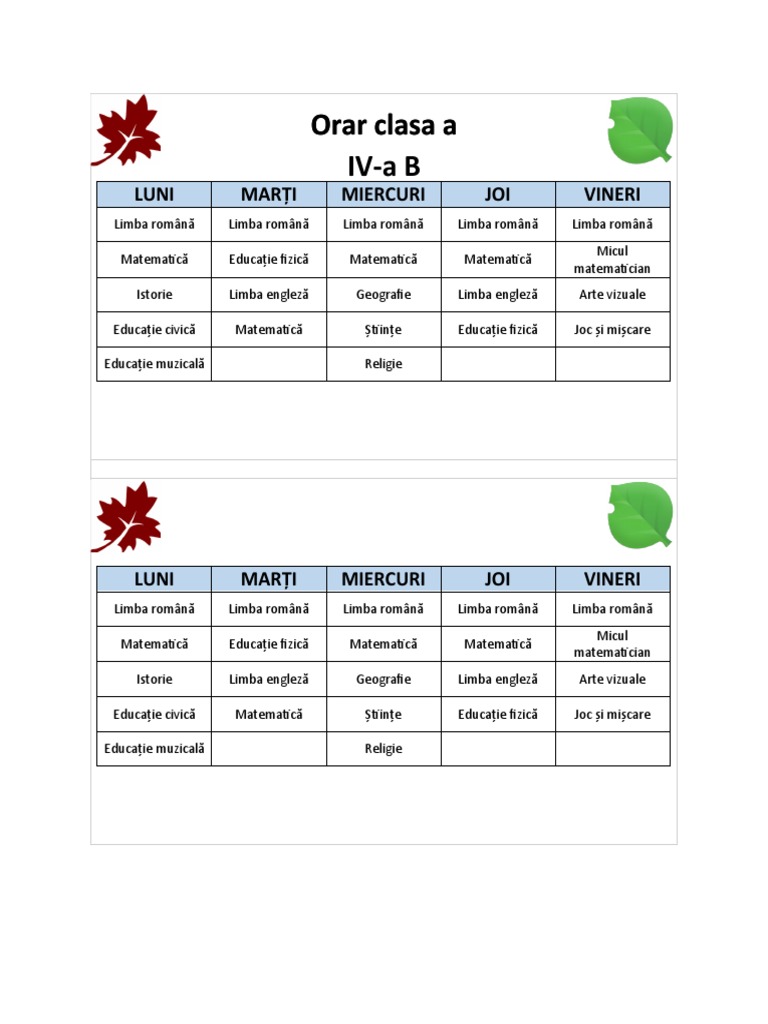 Orar clasa a