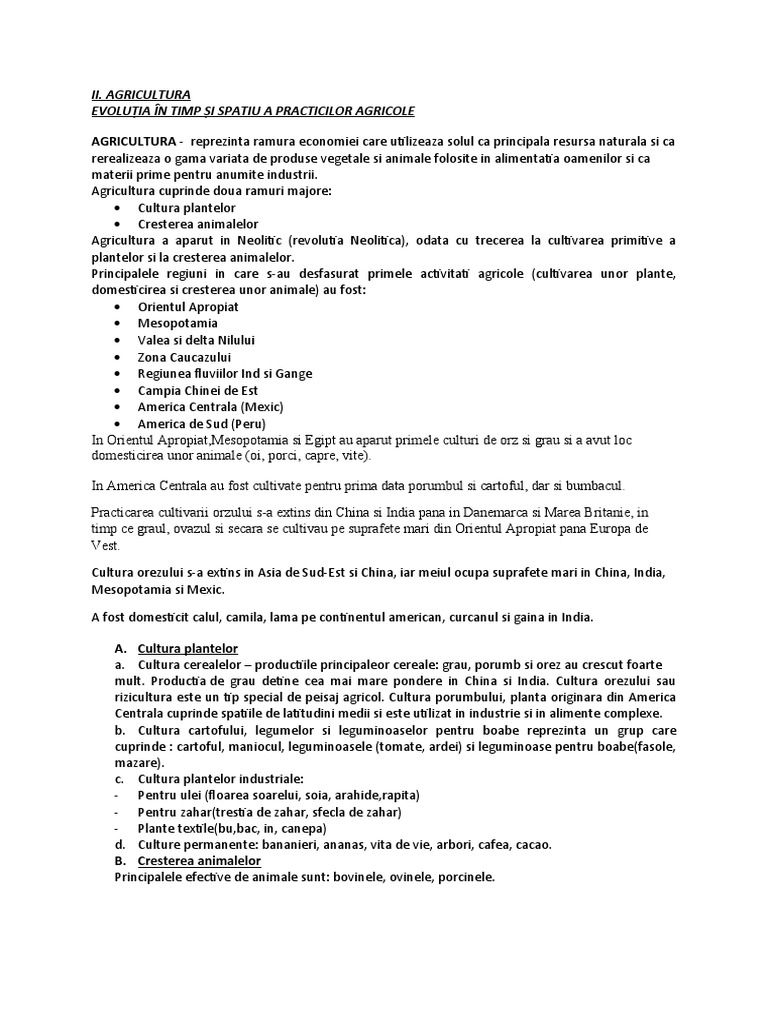 AGRICULTURA - reprezinta ramura economiei care utilizeaza solul ca principala resursa naturala si ca
