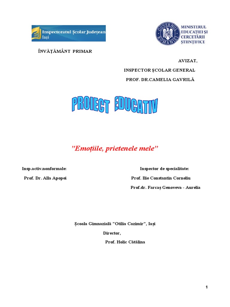 1. TITLUL PROIECTULUI : ”Emoțiile, prietenele mele”