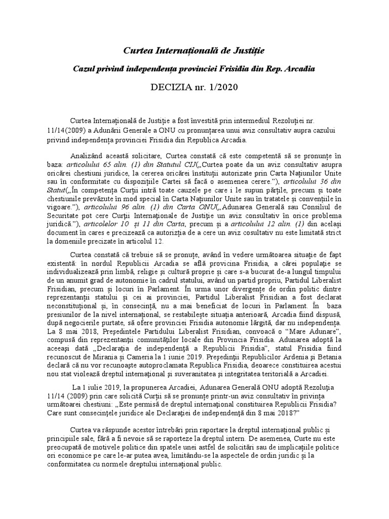 Cazul privind independența provinciei Frisidia din Rep. Arcadia