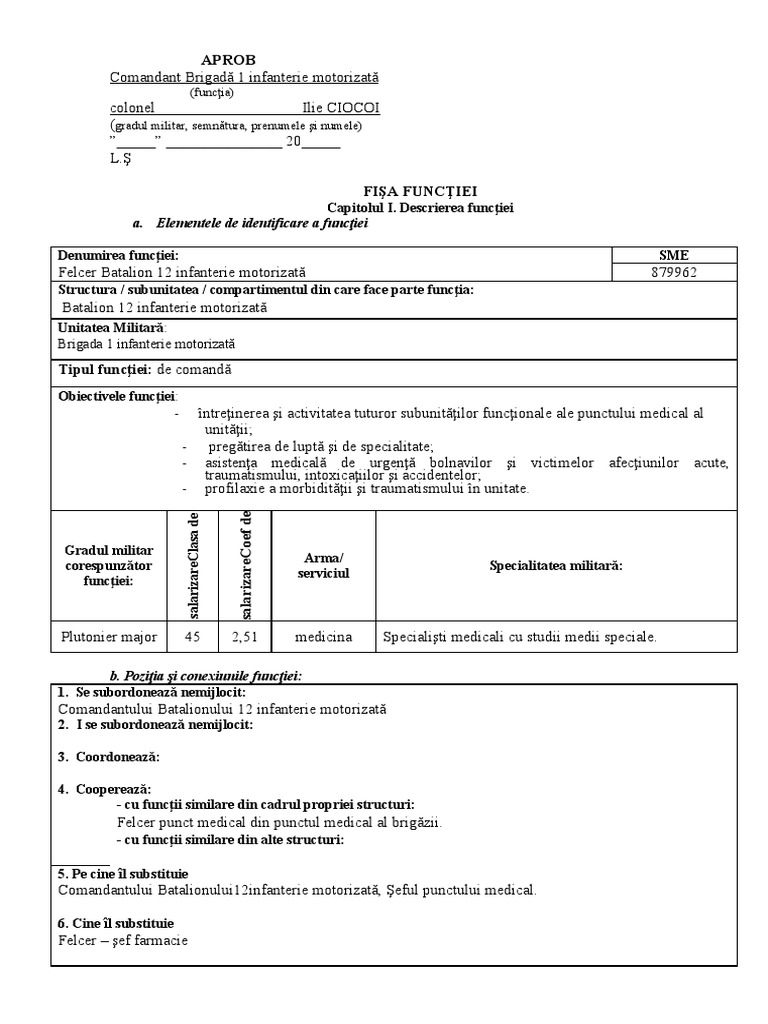 fişei funcţiei: a întocmit fişa funcţiei: personal/similar: