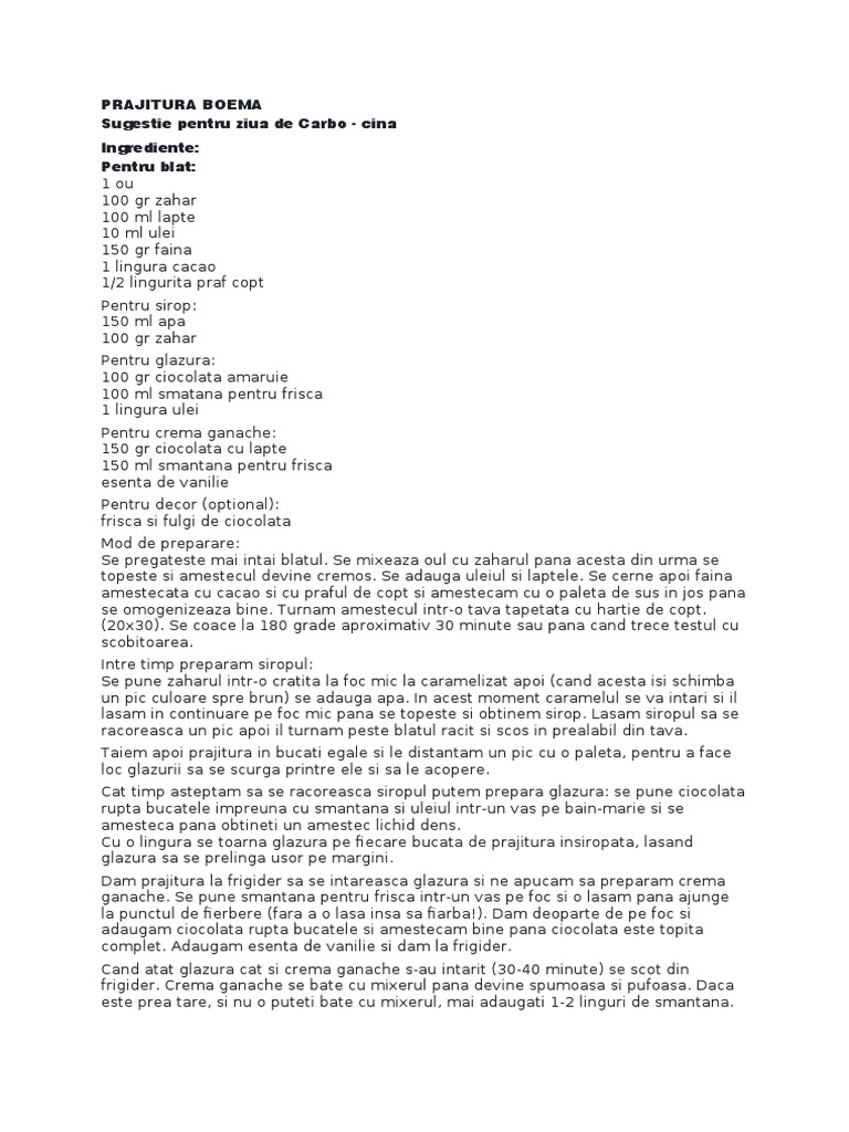 Atentie! Acest preparat se serveste doar la ziua Carbo - cina, maxim 150 gr.