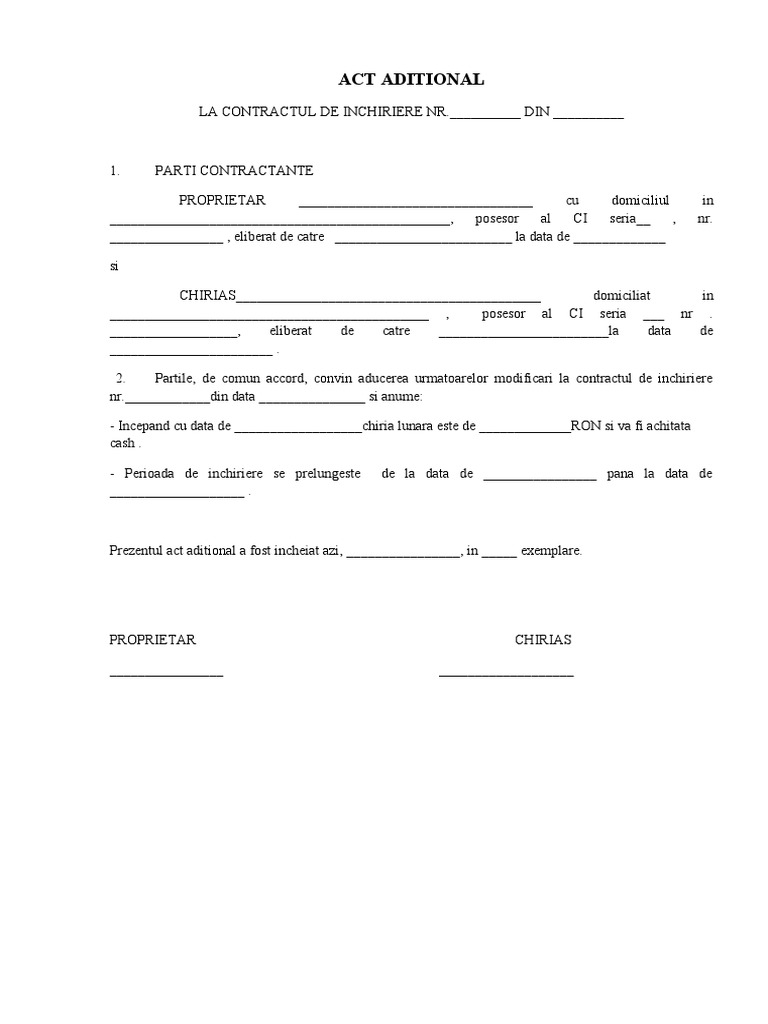 - Incepand cu data de __________________chiria lunara este de _____________RON si va fi achitata