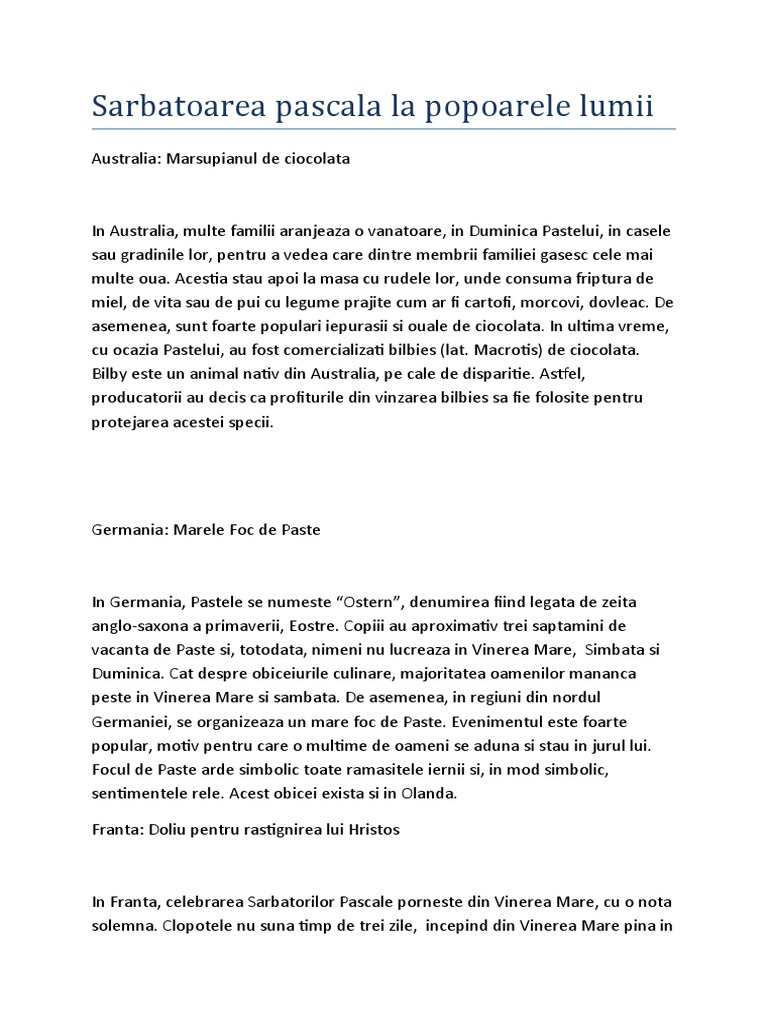 Sarbatoarea pascala la popoarele lumii