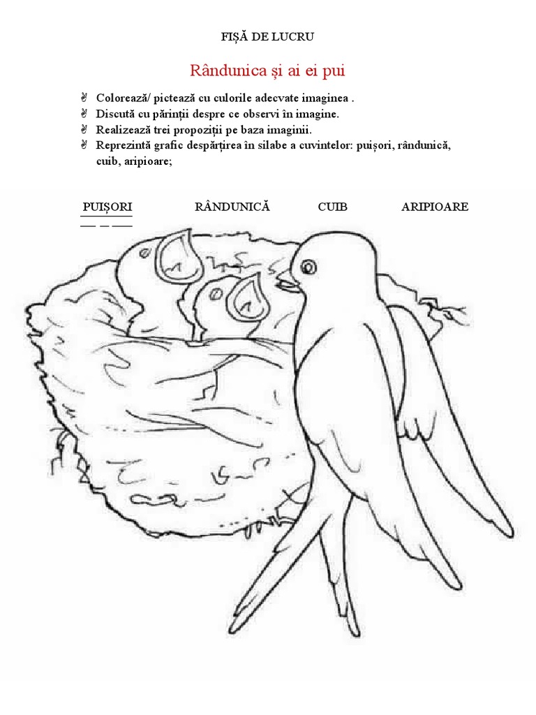 Reprezintă grafic despărțirea în silabe a cuvintelor: puișori, rândunică,