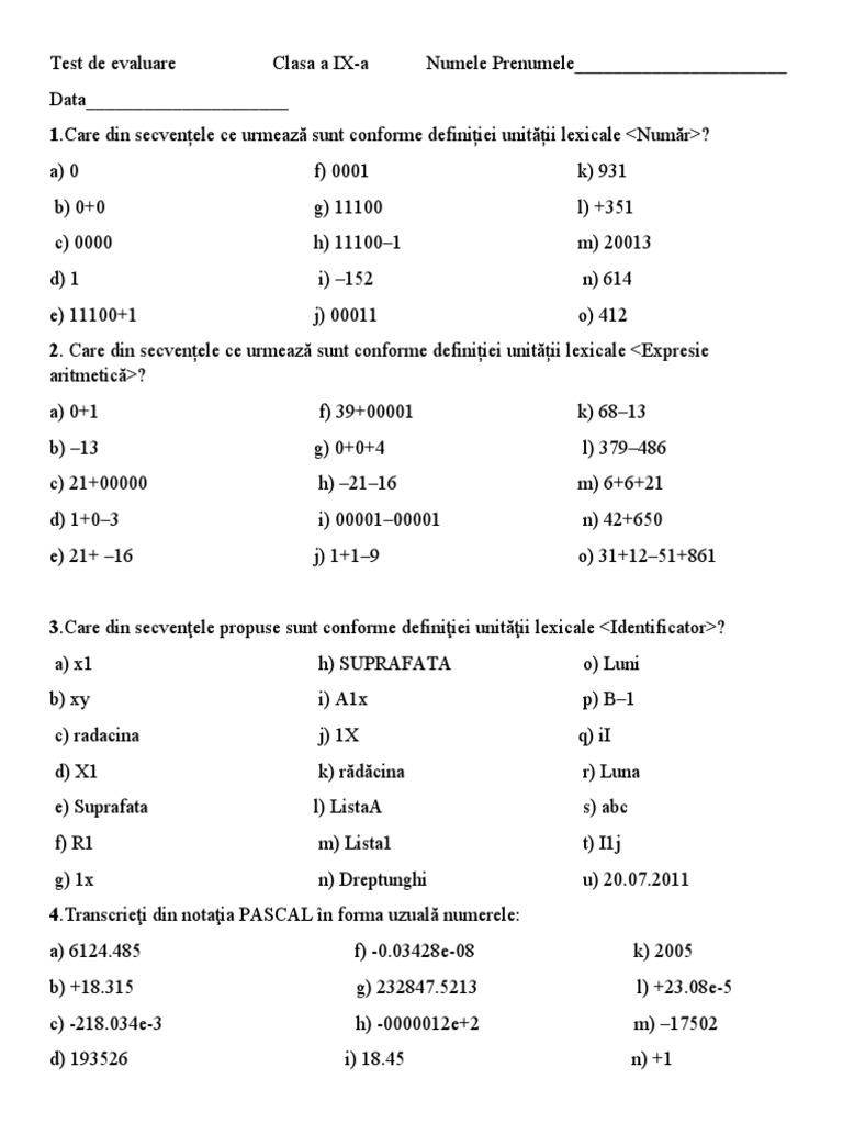 [Link]ţi din notaţia PASCAL în forma uzuală numerele:
