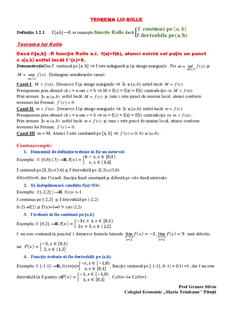 TEOREMA LUI ROLLE