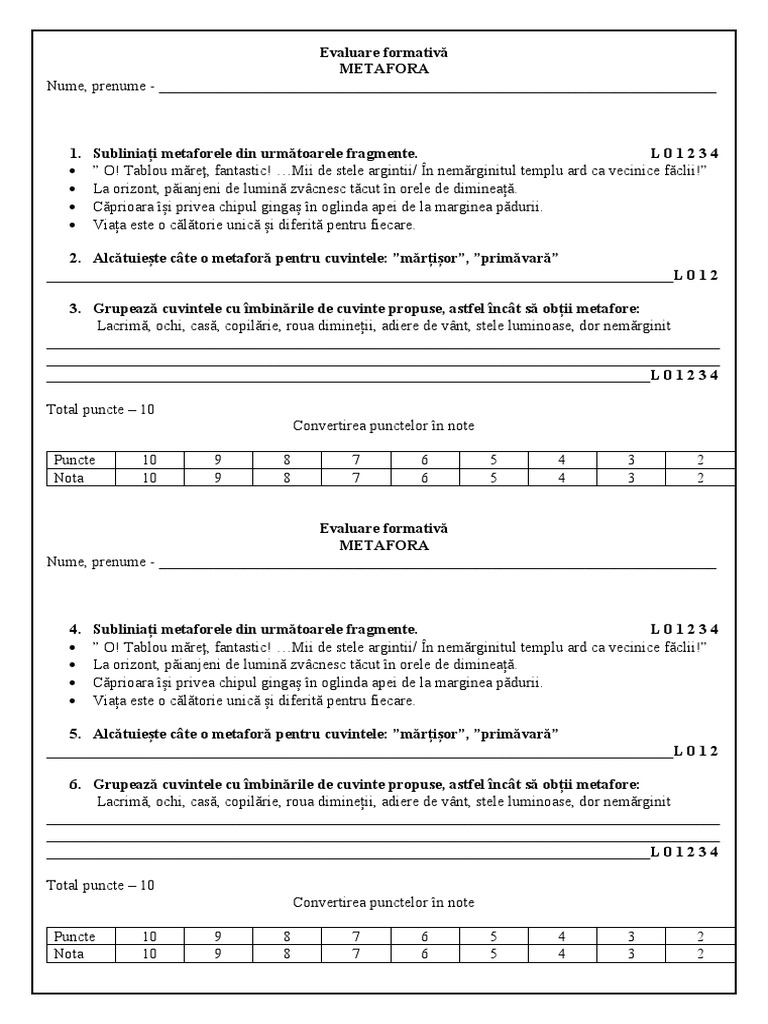 1. Subliniați metaforele din următoarele fragmente. L01234