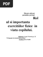 Educaţia fizică are importanţă mare şi pentru pregătirea copiilor în vederea