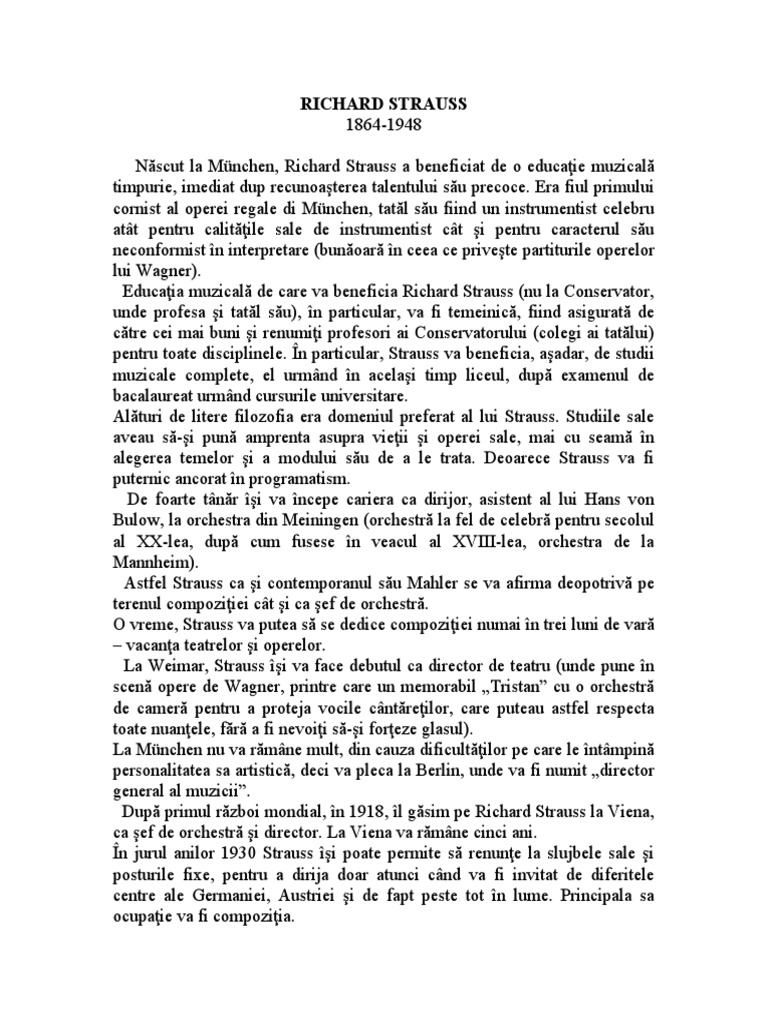 este că Richard Strauss, creaţia sa, ocupă un loc privilegiat în primele şase