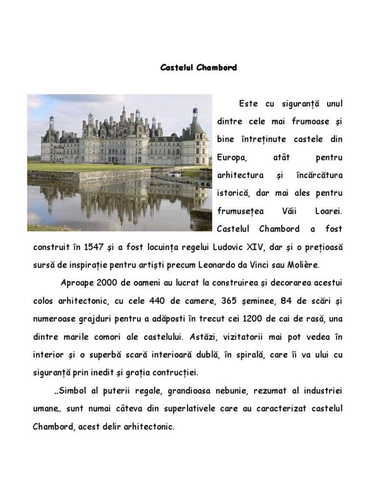 Franţei şi suita lor. În plus, Chambord se mai remarca prin ceva: în 1650 aici