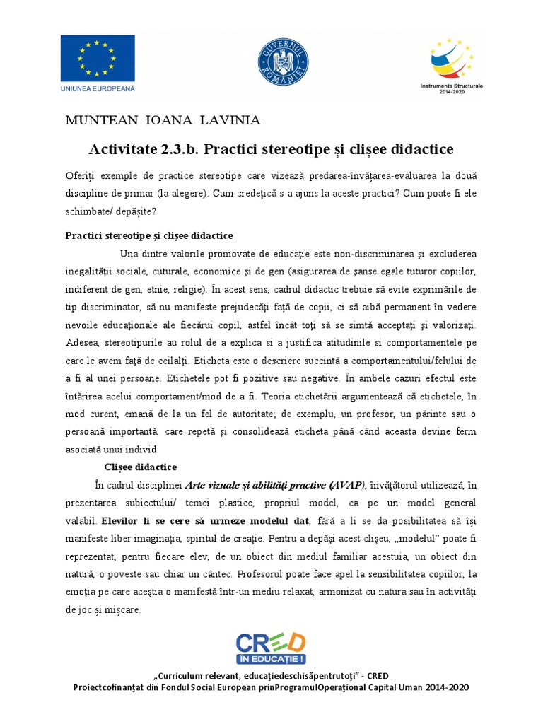 Activitate 2.3.b. Practici stereotipe și clișee didactice