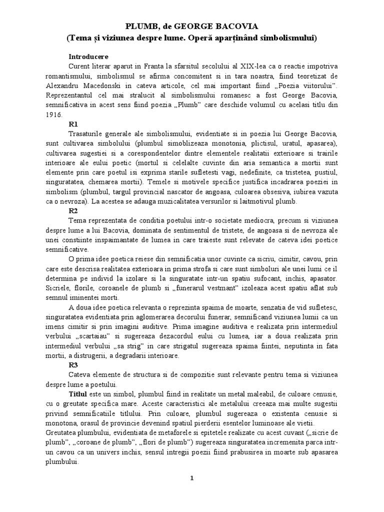 sunt cultivarea simbolului (plumbul simoblizeaza monotonia, plictisul, uratul, apasarea),