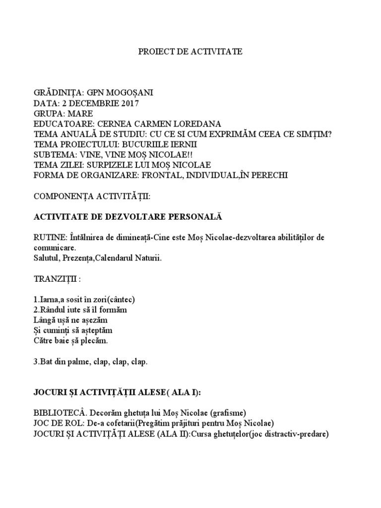 PROIECT DE ACTIVITATE