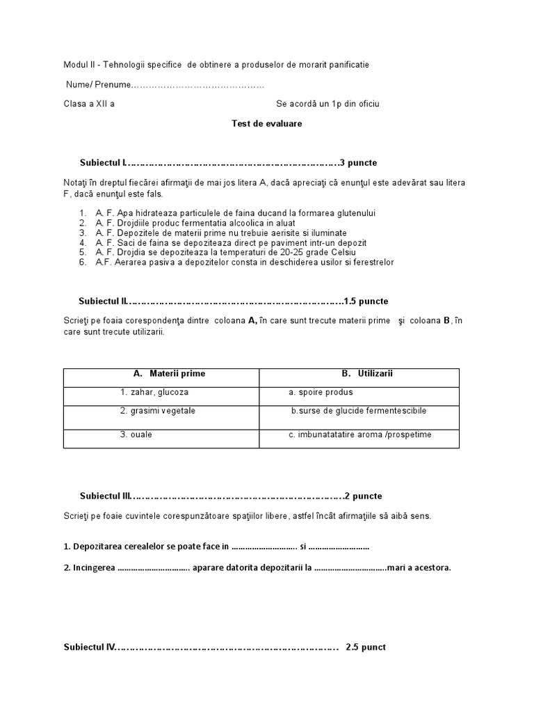 Modul II - Tehnologii specifice de obtinere a produselor de morarit panificatie