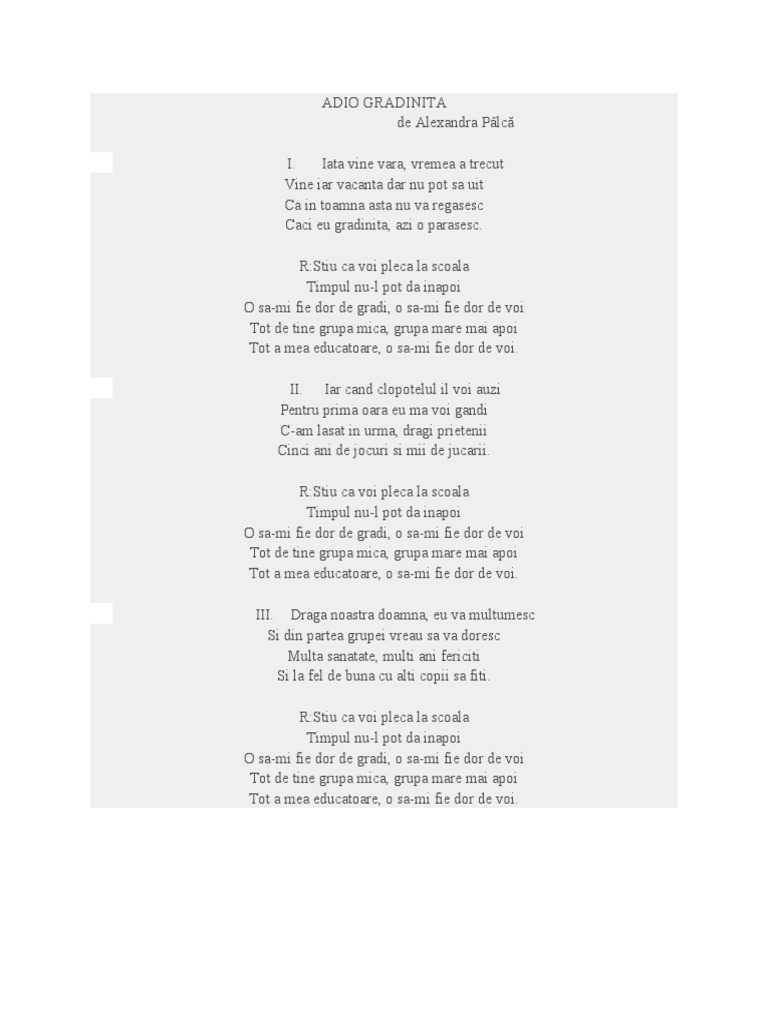 Tot a mea educatoare, o sa-mi fie dor de voi.