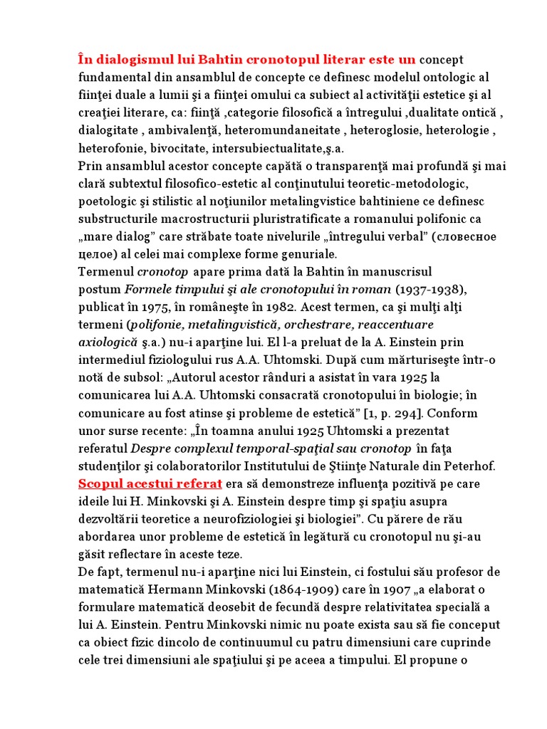 referatul Despre complexul temporal-spaţial sau cronotop în faţa