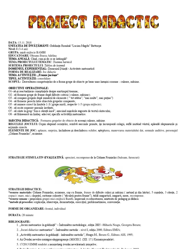 atenţiei min. adus un coş mare cu frunze colorate. Dar, în observaţia Frunzelor, coş comportamentului