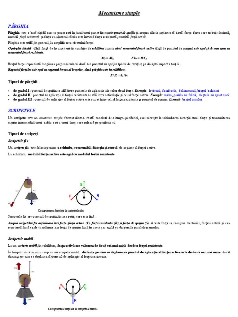 de gradul l : punctul de sprijin se află între punctele de aplicație ale celor două forțe. Exemple: levierul, foarfecele, balansoarul, brațul balanței