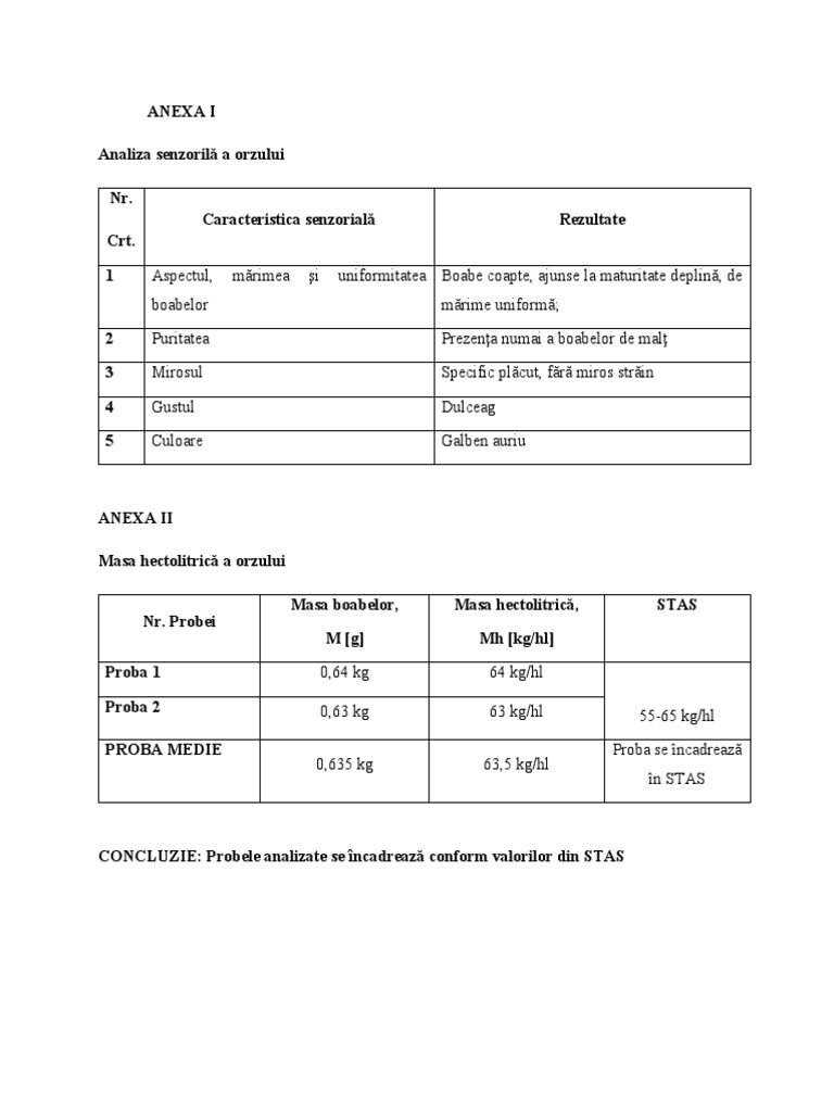 Analiza senzorilă a orzului