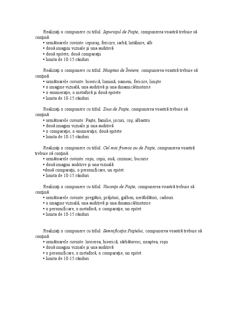 Realizaţi o compunere cu titlul: Ziua de Paşte, compunerea voastră trebuie să