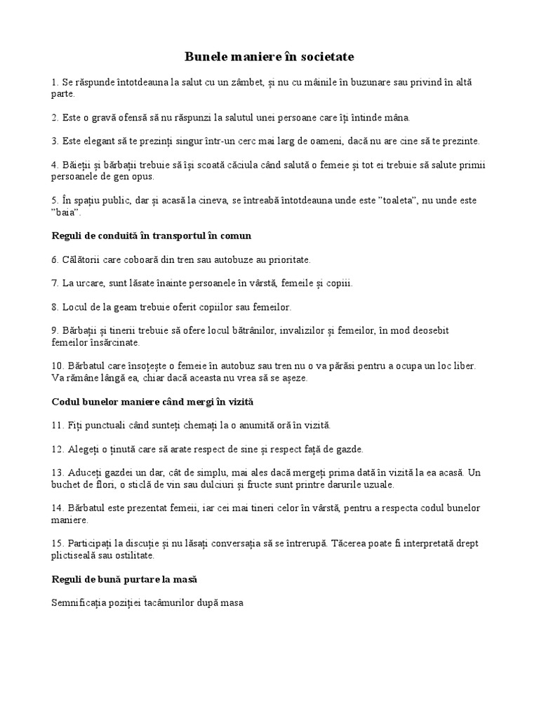 17. Nu se țin coatele pe masă și se adoptă o poziție cât mai decentă.
