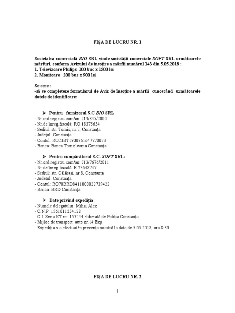 -să se completeze formularul de Aviz de însoţire a mărfii cunoscând următoarele