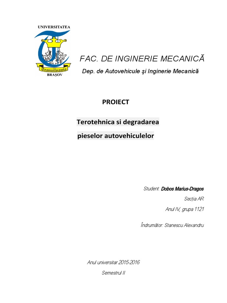 si am specificat uzura, unor piese, aparută pe parcursul funcționarii motorului.