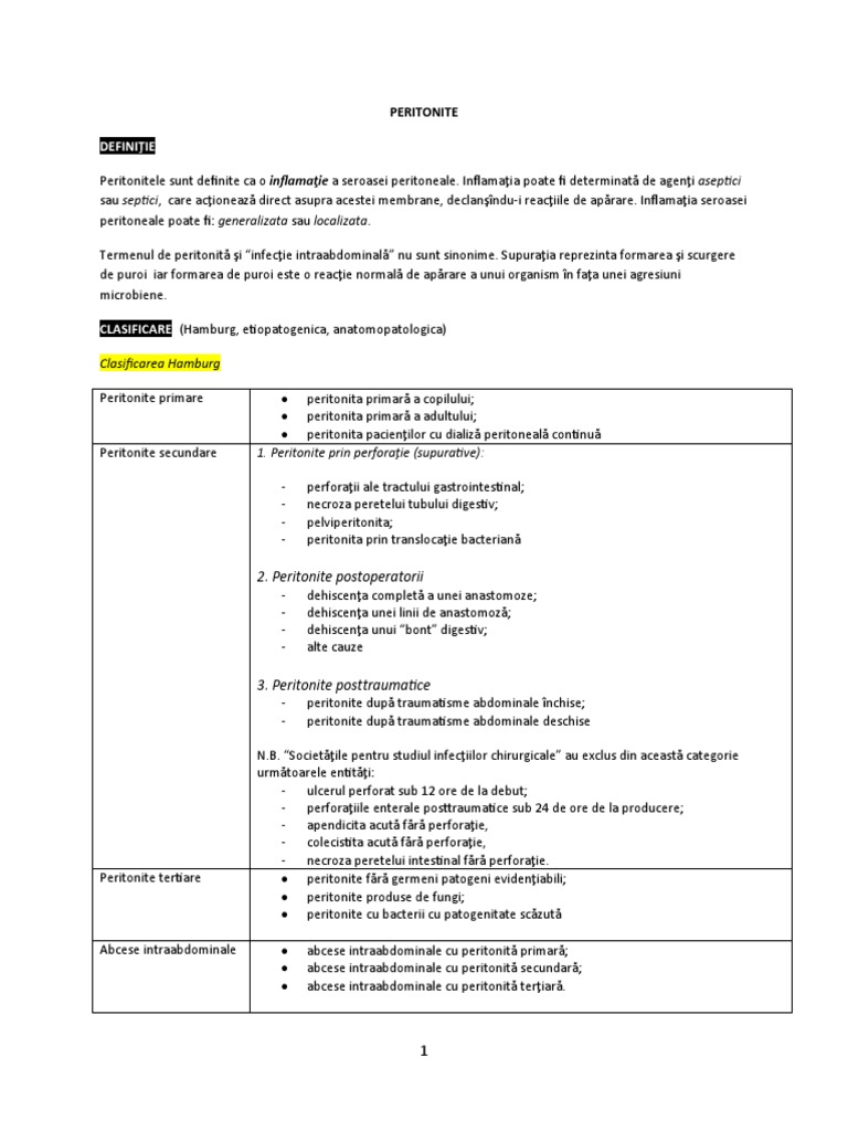 Peritonite tertiare peritonite fără germeni patogeni evidenţiabili;