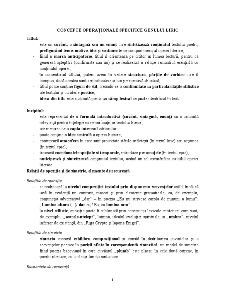 CONCEPTE OPERAŢIONALE SPECIFICE GENULUI LIRIC