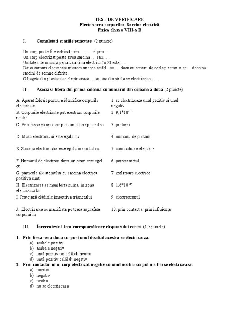J. Electrizarea se manifesta pe toata suprafata 10. prin contact si prin influienţa