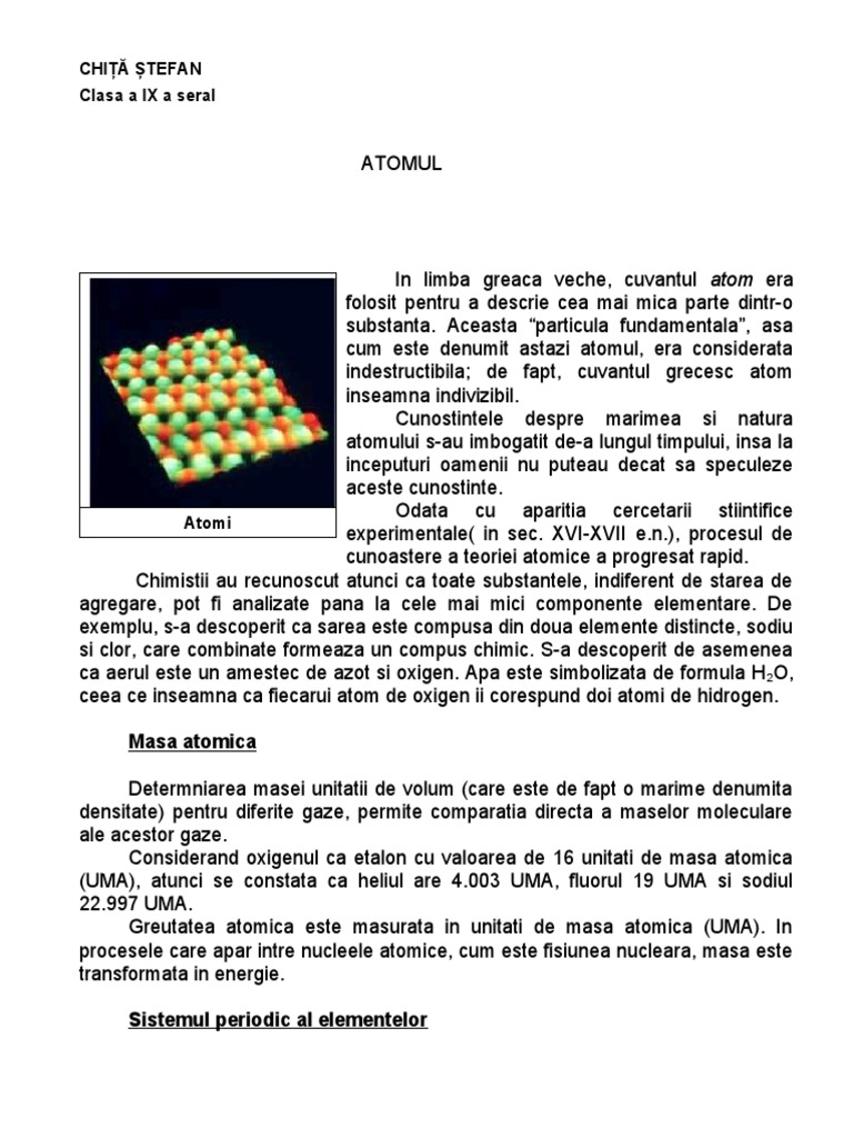 greutatea 1.7x10-24 g. Un atom este atat de mic incat o singura picatura de apa