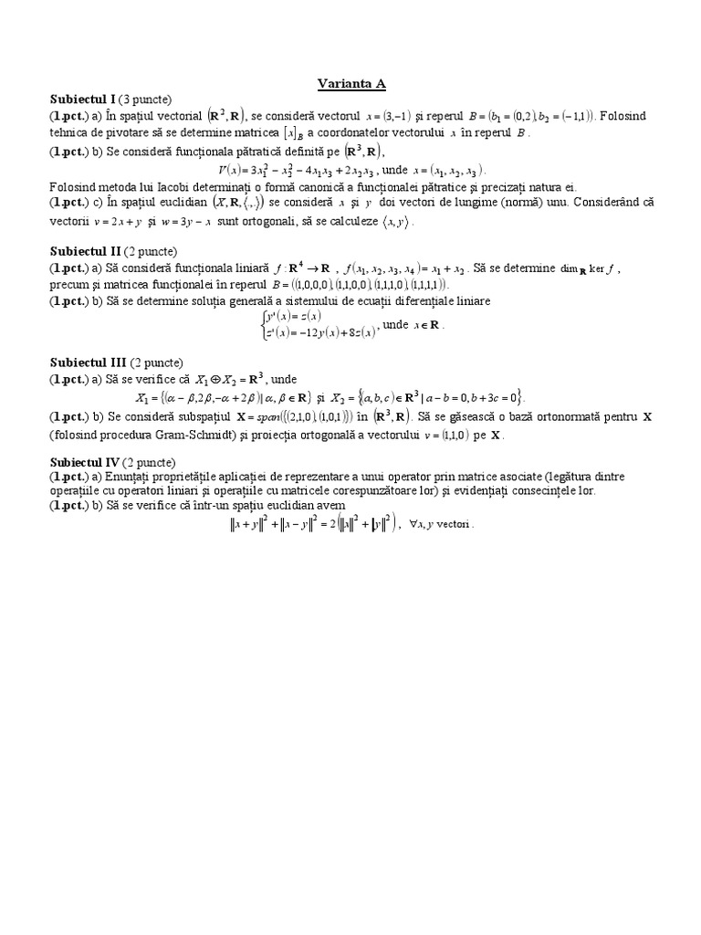 ([Link].) b) Se consideră funcŃionala pătratică definită pe R 3 , R , ( )