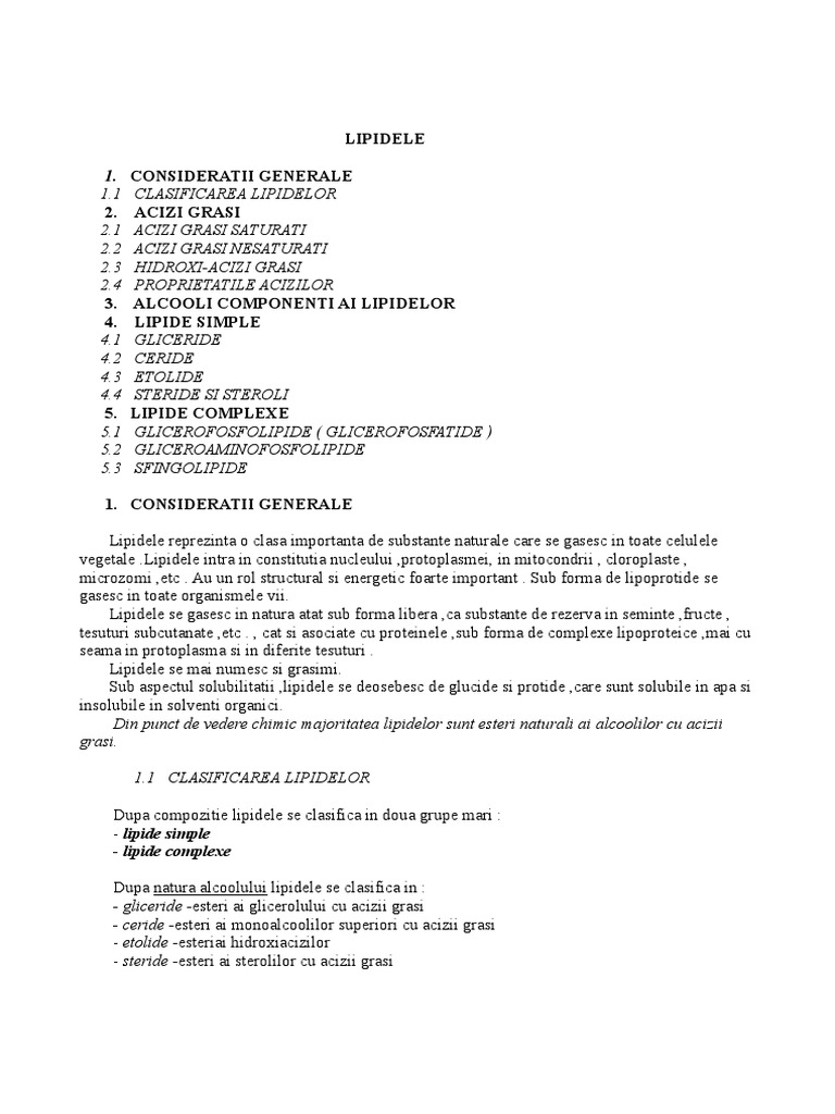 Lipidele reprezinta o clasa importanta de substante naturale care se gasesc in toate celulele