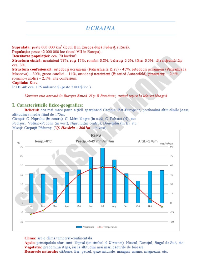 Ucraina este așezată în Europa Estică, N și E României, având ieșire la Marea Neagră.