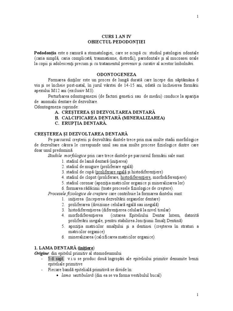 A. CREŞTEREA ŞI DEZVOLTAREA DENTARĂ