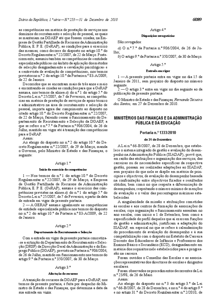 para a GeRAP. Portaria n.º 1333/2010