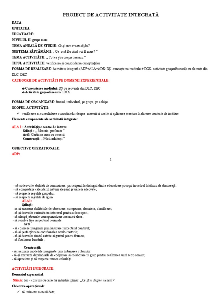 PROIECT DE ACTIVITATE INTEGRATĂ