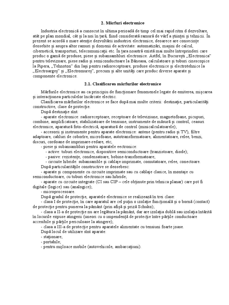 Clasificarea mărfurilor electronice se face după mai multe criterii: destinație, particularități