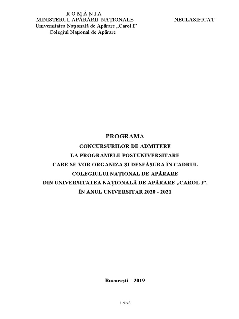 Universitatea Naţională de Apărare „Carol I” se fac conform:
