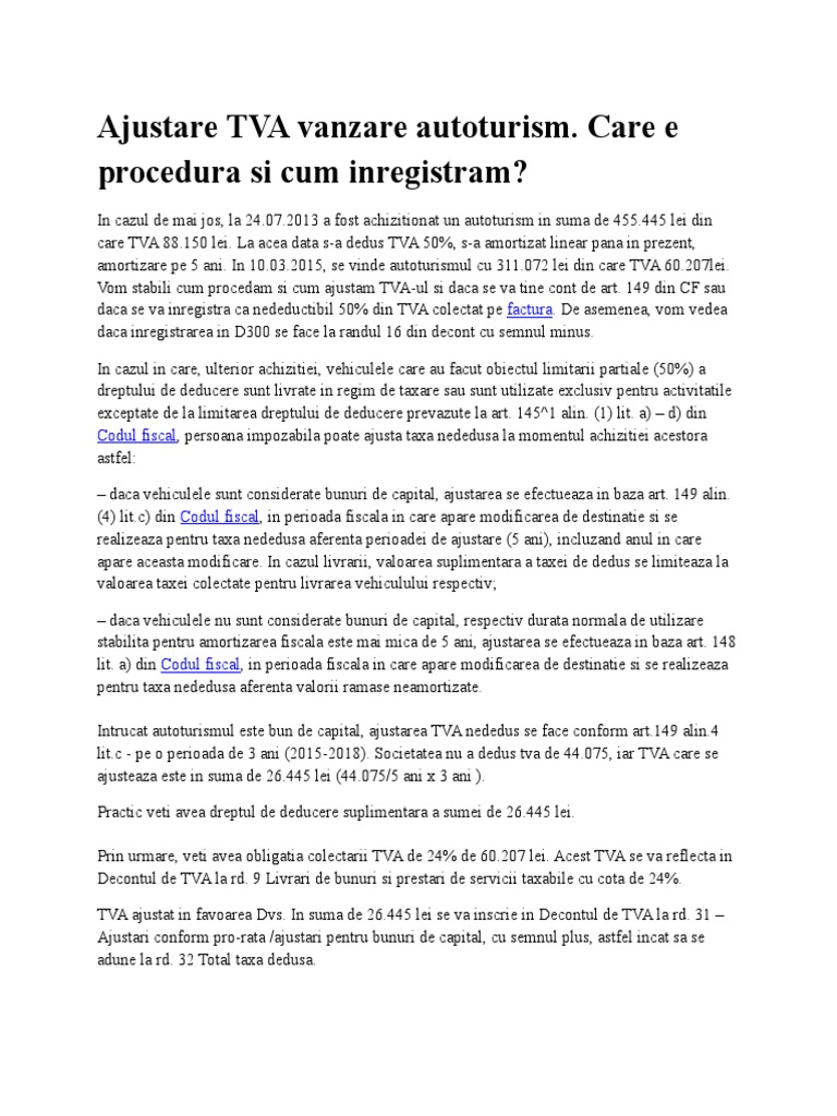 Ajustare TVA vanzare autoturism.