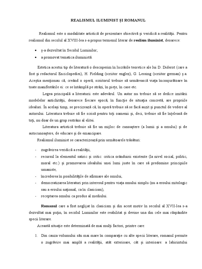 REALISMUL ILUMINIST ȘI ROMANUL