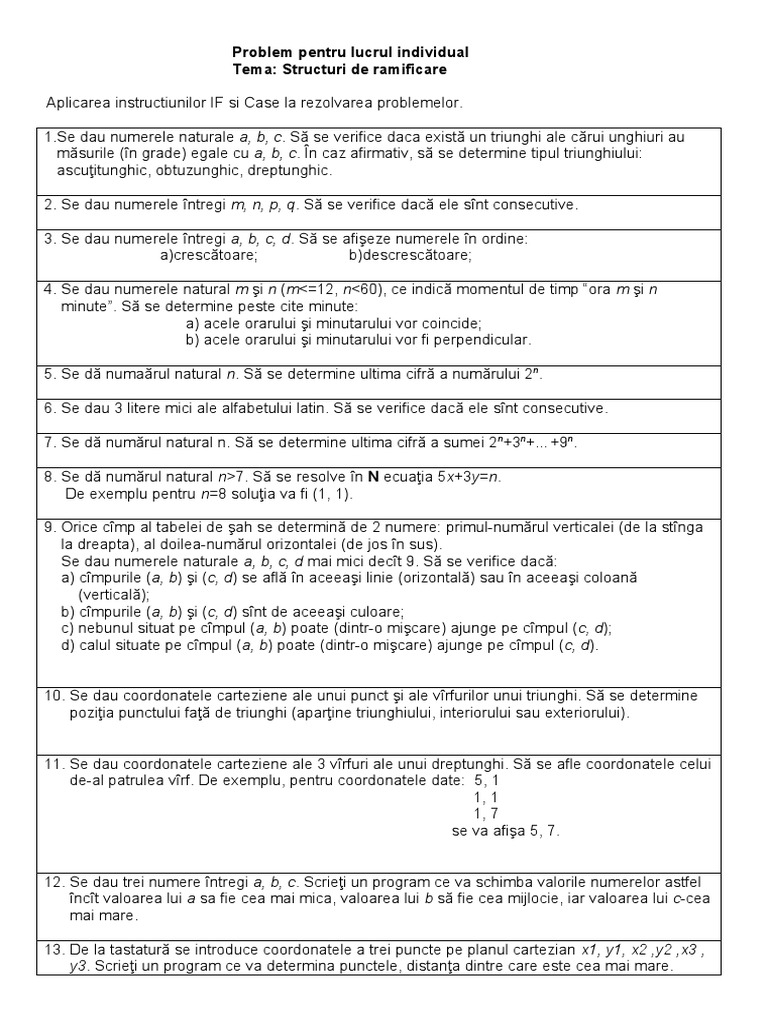 Aplicarea instructiunilor IF si Case la rezolvarea problemelor.