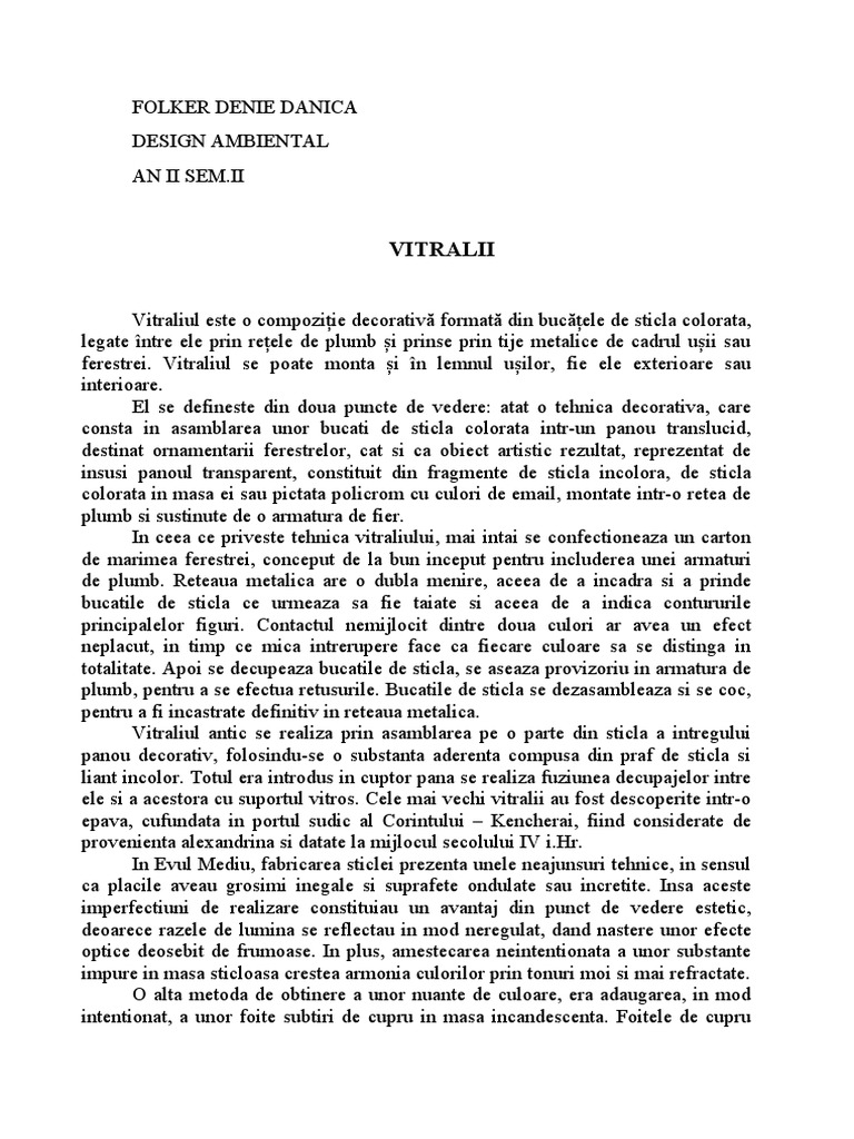destinat ornamentarii ferestrelor, cat si ca obiect artistic rezultat, reprezentat de