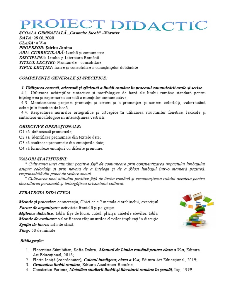 TITLUL LECȚIEI: Pronumele - consolidare