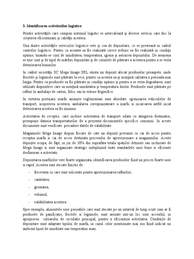 Identificarea activitatilor logistice