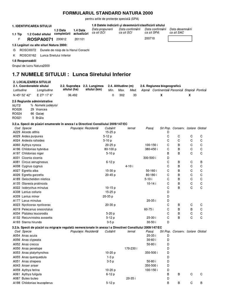 complet rii actualiz rii ca sit SCI ca sit SCI ca sit SPA: ca sit SAC