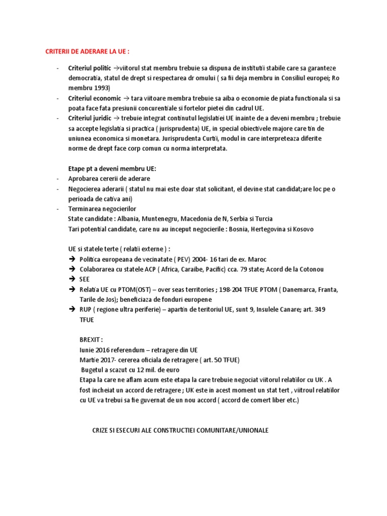 - Criteriul juridic trebuie integrat continutul legislatiei UE inainte de a deveni membru ; trebuie
